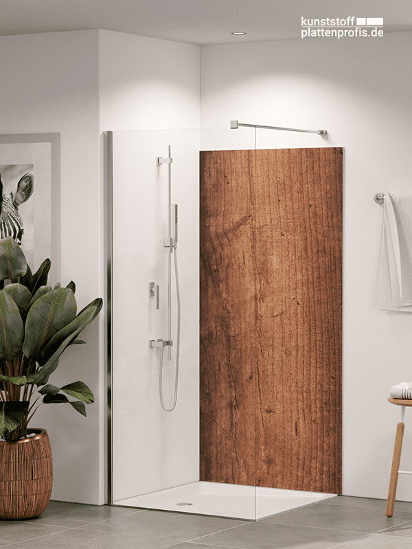 Unsere Duschrückwand aus Alu-Verbund bringt modernes Design und Langlebigkeit in Ihr Bad.