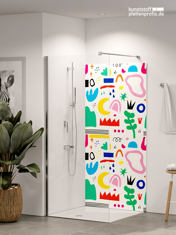 Mit seidenmatter Oberfläche, präzisem UV-Druck und einfacher Montage wird Ihre Dusche im Handumdrehen zum Blickfang.