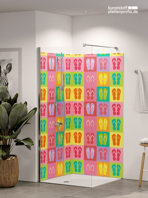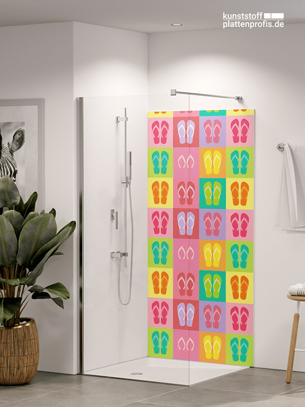 Mit seidenmatter Oberfläche, präzisem UV-Druck und einfacher Montage wird Ihre Dusche im Handumdrehen zum Blickfang.